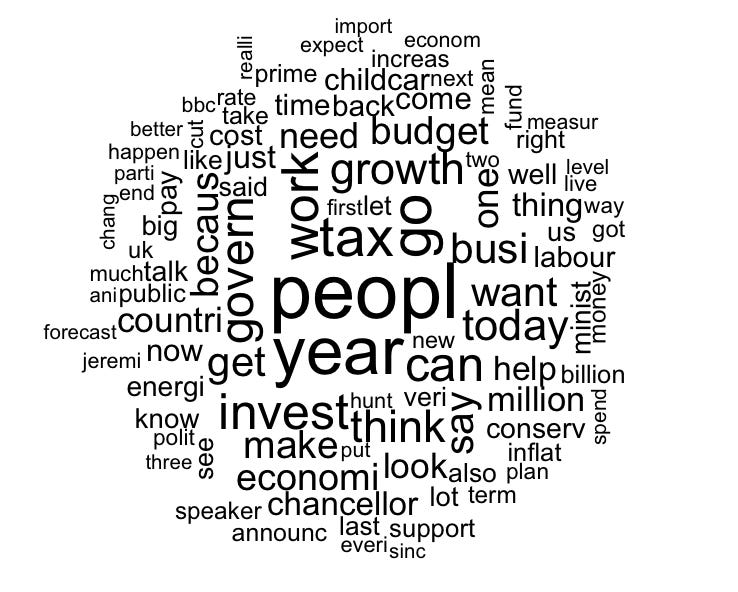 Pictured below is a word cloud of the most frequently used words during approximately six hours of BBC news coverage of the recent Budget. *